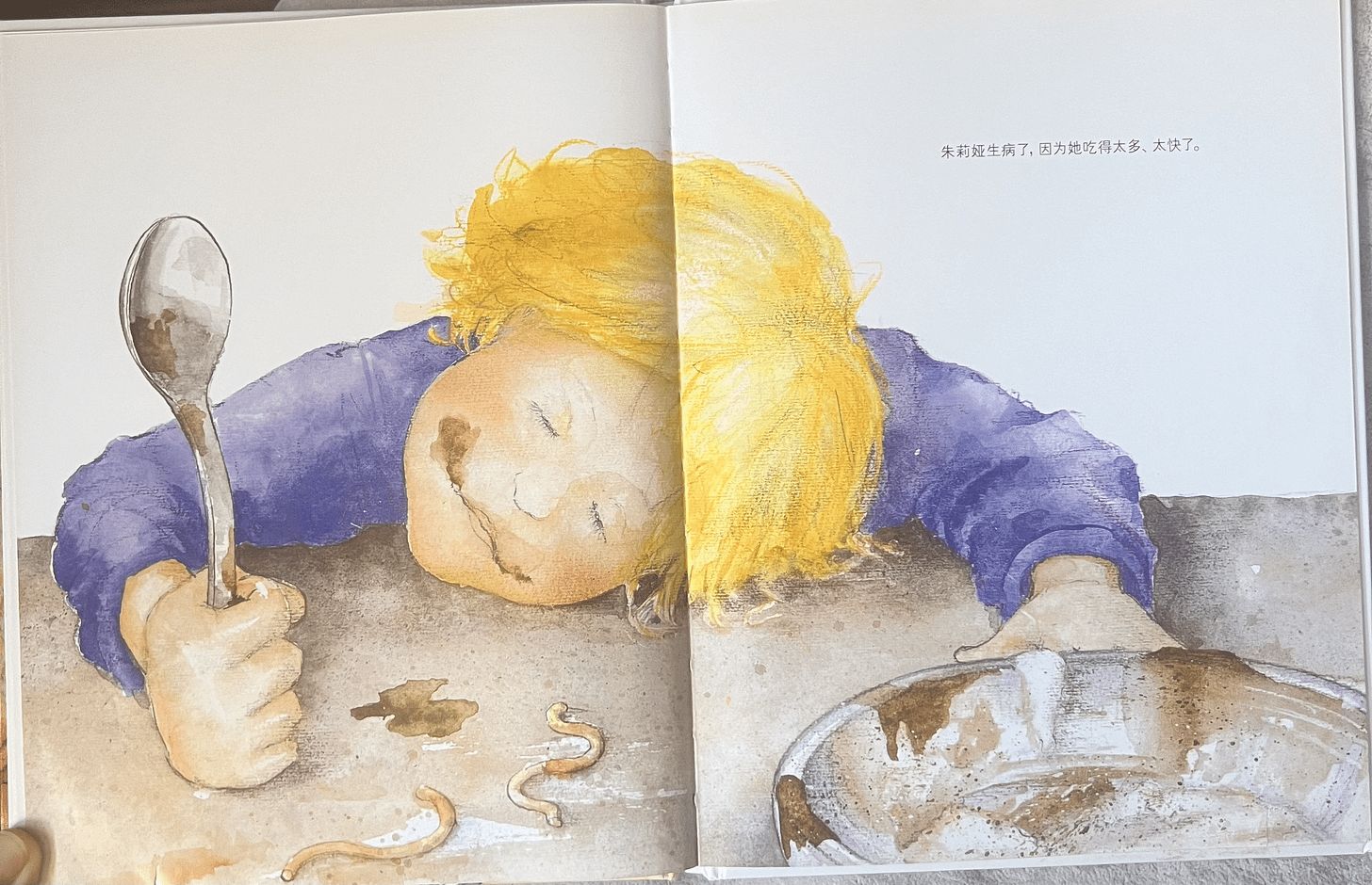 Julia got sick because she ate too much, too fast!