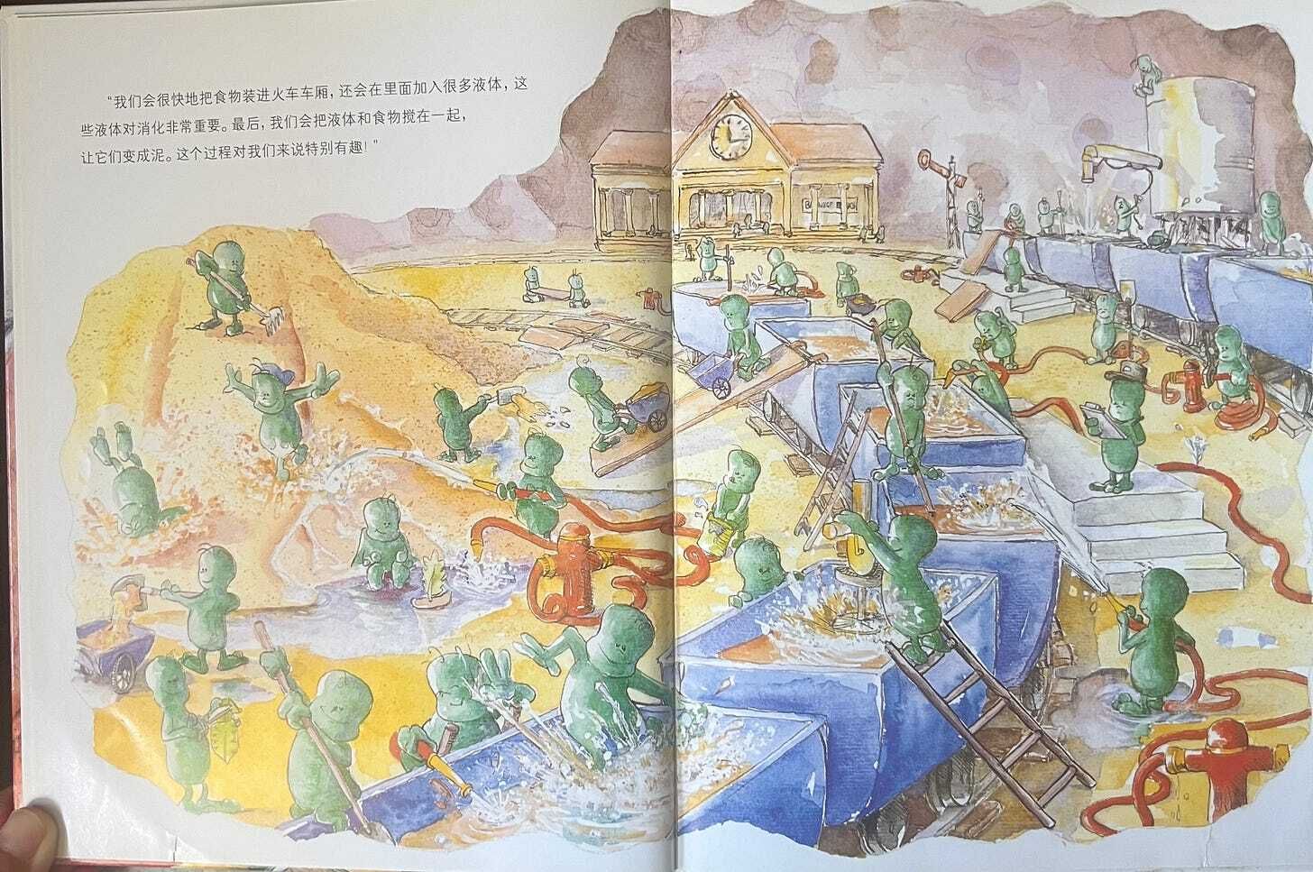 The picture book perfectly revisits the digestive process we experienced at the museum. Thus, the child was full of curiosity about the picture book. We spent 30 minutes reading the book and another 30 minutes retelling the story. For a 5.5-year-old child to concentrate on a picture book for an hour is remarkable, indicating that this is an interesting and enlightening book for both children and parents.